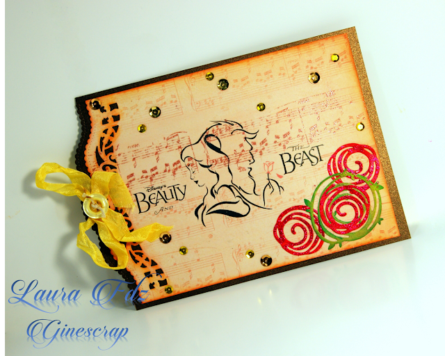 4.- Bajo mi digi coloqué die cuts de diferente forma y en colores contrastantes y con sus bordes entintados, que simultáneamente sirvieran para dar dimensión y resaltar el digi sobre el fondo de la tarjeta. Agregué como Título un stiker de la misma colección de papeles y algunas lentejuelas de nuevo con colores contrastando sobre el sitio en que las coloqué.