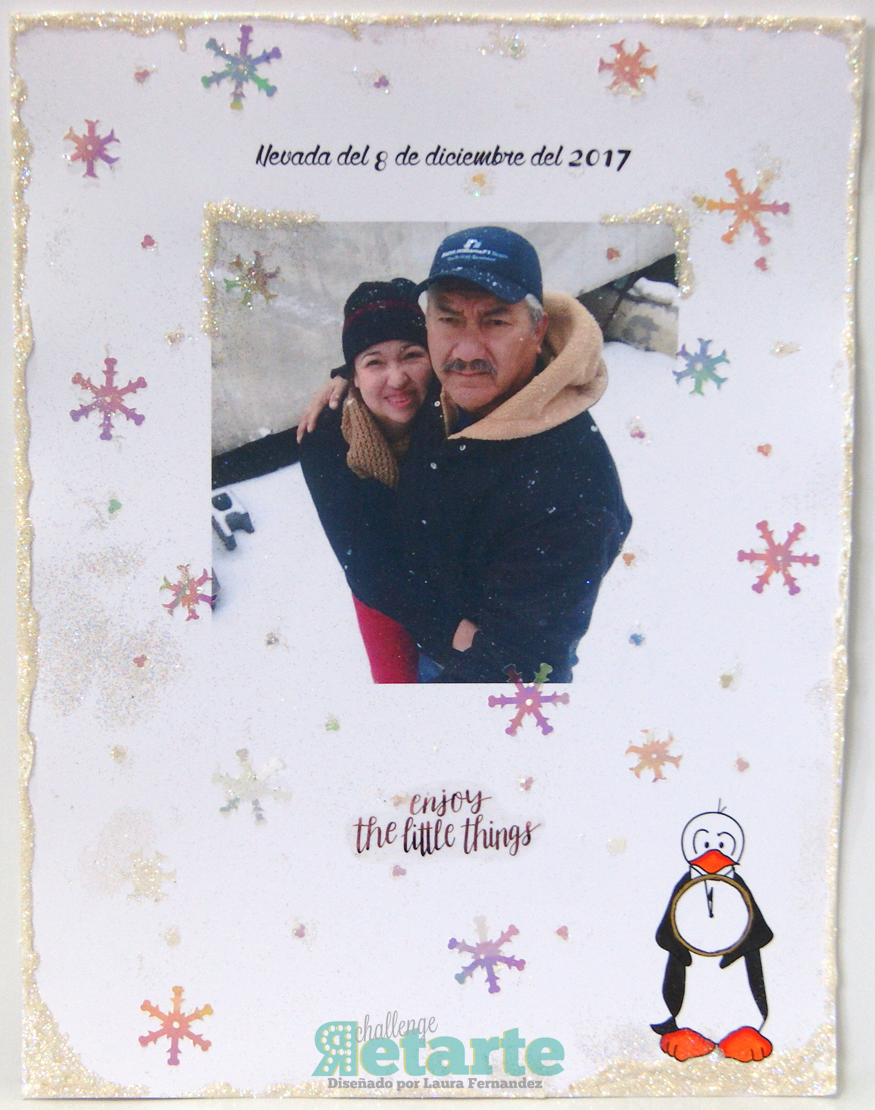 El día de hoy les cuento que ya comencé a trabajar en mi "Diario de Navidad 2017". Para un trabajo como éste, me gusta documentar cuanto antes, en la medida de lo posible cada uno de mis días. De ésta forma, hoy les traigo un mini LO fresquecito, del pasado vienes, en el cual utilizé éste pingüinito que pueden encontrar diretamente Aquí.